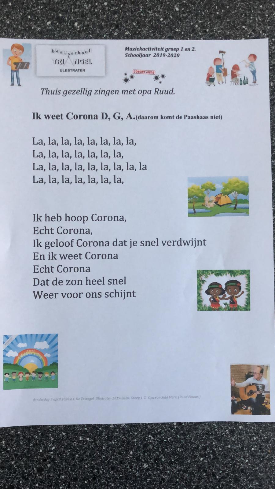 Als afsluiting zingt opa Ruud een liedje over Corona.Het liedje heet: 'Ik heb hoop Corona'.